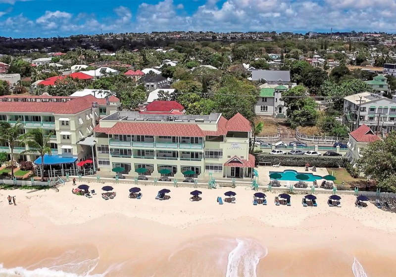 Im Coral Mist Beach Hotel wohnt Ihr direkt am Sandstrand von Barbados, mit Blick über das Wasser und kurzen Wegen ins lebendige St. Lawrence Gap. Die Größe bleibt überschaubar: 32 Wohneinheiten auf vier Etagen, serviced von einer 24-Stunden-Rezeption und durchdacht ergänzt um Pool, Sonnenterrasse und beschattete Liegeflächen am Strand.