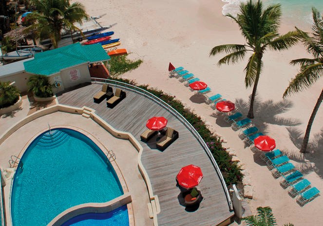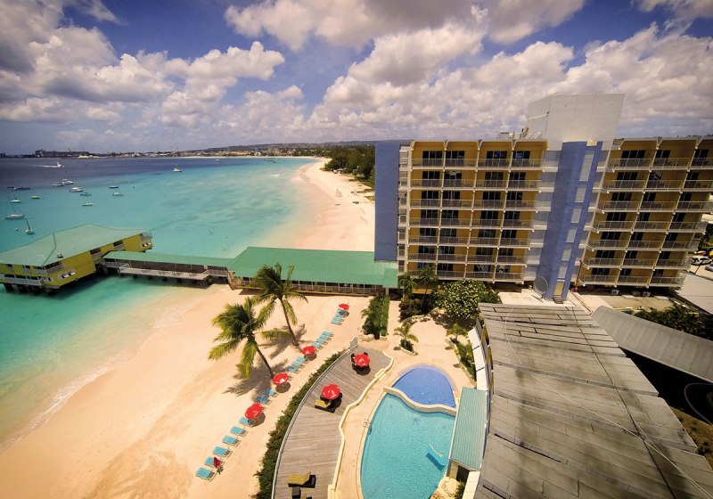 Ihr wohnt direkt am feinsandigen Strand der Carlisle Bay – der Übergang vom Poolbereich zum Strand gelingt in wenigen Schritten. Das Zentrum von Bridgetown liegt rund 4 km entfernt, Needham’s Point etwa 2 km, der Flughafen etwa 15 km. So kombiniert Ihr Strandleben mit kurzen Wegen zu städtischen Eindrücken.