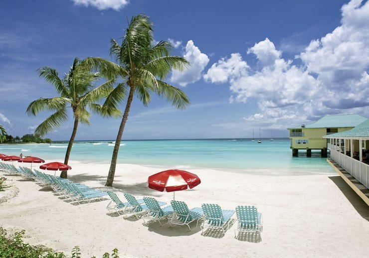- Strandservice: Liegen, Schirme und Tücher warten direkt an der Carlisle Bay.