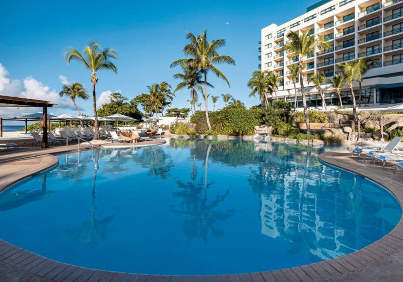 Im Hilton Barbados Resort wohnt Ihr auf Needham’s Point direkt zwischen zwei Sandstränden. Das Haus wirkt weitläufig, maritim und klar strukturiert. Ihr flaniert über die Sonnenterrassen, hört leises Wellenrauschen und wählt zwischen zwei Pools oder dem Strand. Wer Abwechslung sucht, startet vom Resort aus zu Stadt, Kultur und Meerabenteuern.