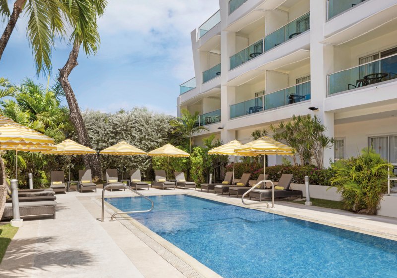 Die Adresse spricht für sich: Südküste von Barbados, etwa 100 Meter bis zum flach abfallenden Sand des Rockley Beach. Eine Straße trennt Hotel und Strand, Liegen und Sonnenschirme stehen dort bereit. Bis ins lebhafte St. Lawrence Gap sind es rund zwei Kilometer, der Flughafen liegt etwa 15 Kilometer entfernt.