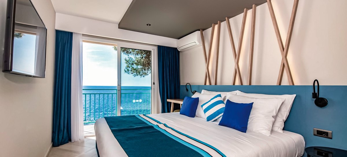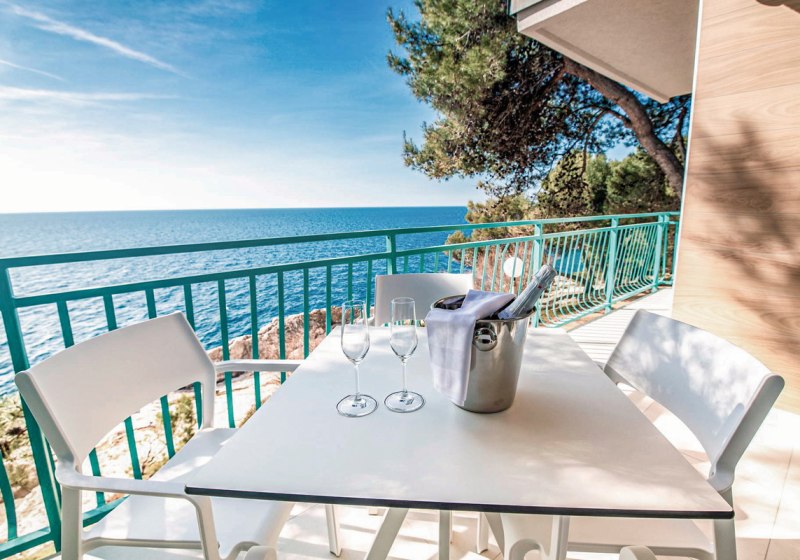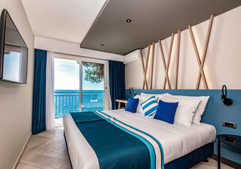 - Halbinsel-Lage: Kurzer Weg zum Felsstrand mit Promenade und Badeplateaus.