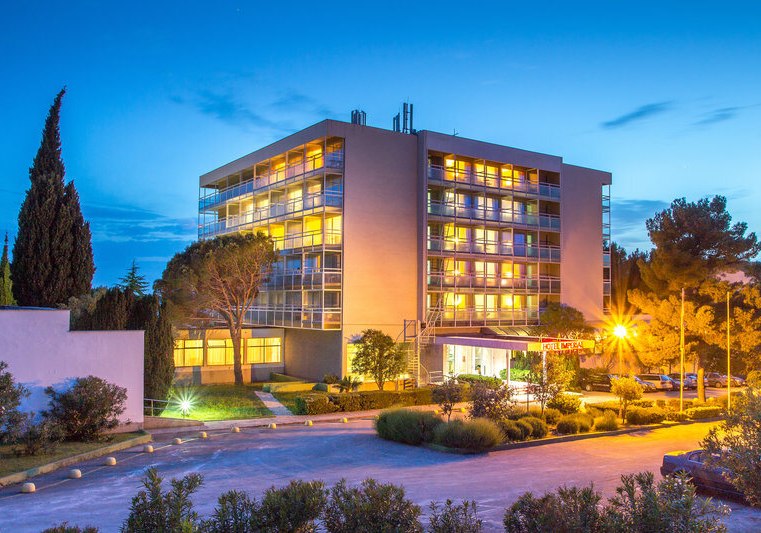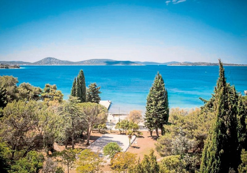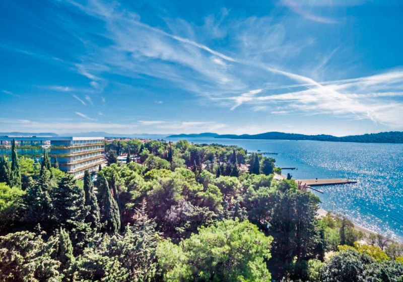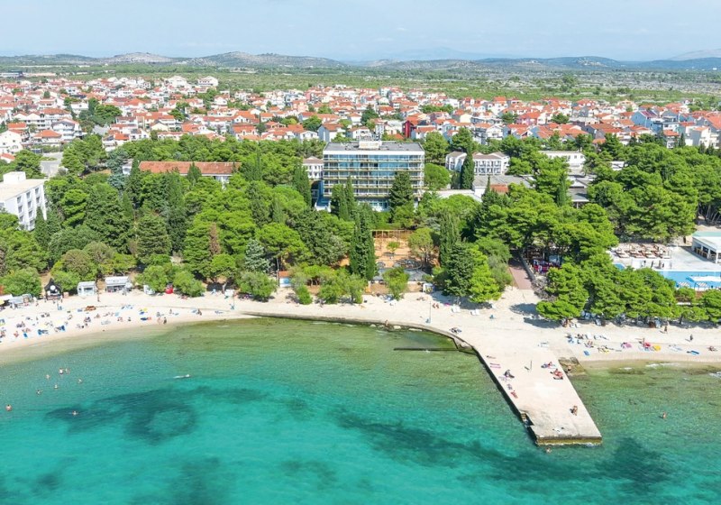 Im Hotel Imperial wohnt Ihr in einem 3-Sterne-Strandhotel nahe Šibenik, nur einen kurzen Spaziergang vom Kiesstrand entfernt. Die Anlage kombiniert Strandnähe mit einer soliden Infrastruktur: Außen- und Hallenpool, Kinderpool mit Wasserrutsche, Gartenflächen und Terrassen schaffen Raum für entspannte Tage und lebhafte Abende.