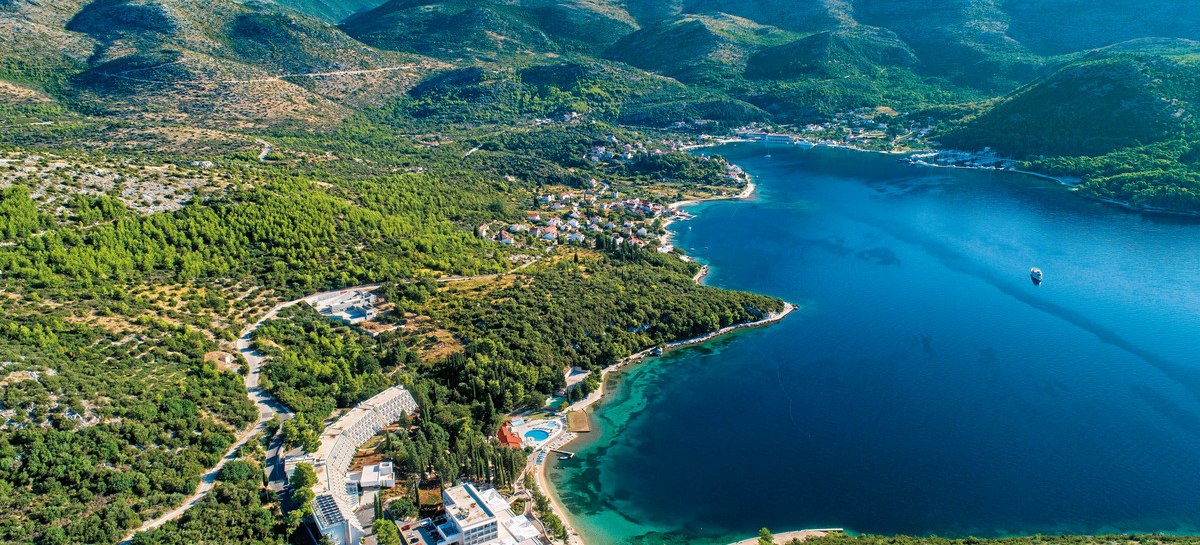 Im Hotel Osmine wohnt Ihr unmittelbar an der Bucht von Slano, mit eigenem Hotelstrand und zwei Meerwasserpools als ruhigem Gegenpol zum lebhaften Tagesprogramm. 183 Wohneinheiten, lichtdurchflutete Lounges und eine weitläufige Poolterrasse strukturieren den Aufenthalt klar und angenehm. Familien, Paare und aktive Reisende finden hier ebenso Platz wie Gruppen mit Tagungsbedarf.