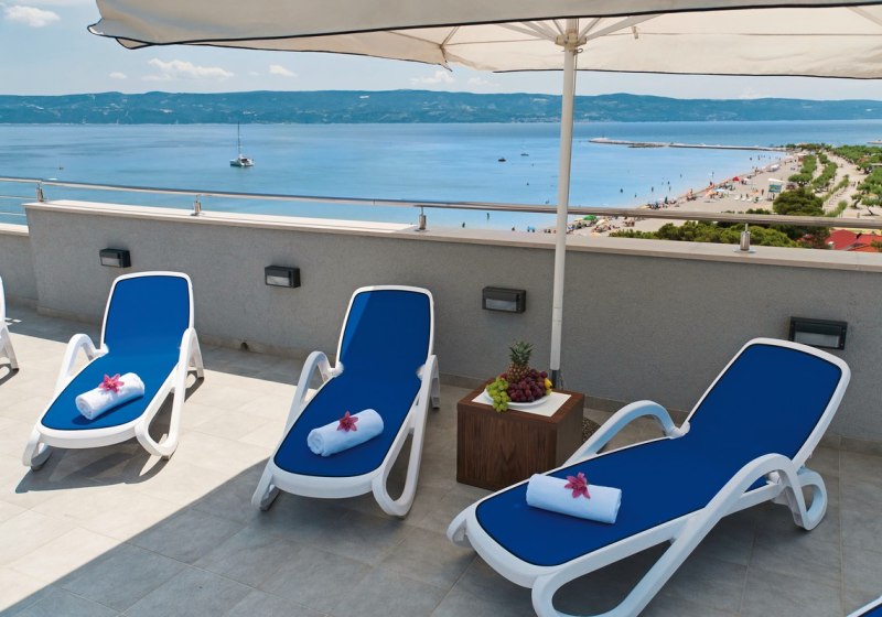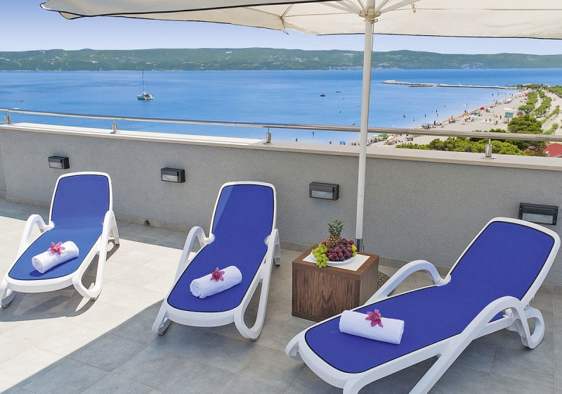 Im Hotel Plaa Omi wohnt Ihr direkt am Sandstrand von Omiš, nur wenige Schritte vom lebendigen Zentrum entfernt. Das Haus verbindet die bequeme Strandlage mit einer klar strukturierten Hotelwelt: kurze Wege, aufgeräumte Bereiche, verlässliche Services und ein Blick auf die Adria, der den Tagesrhythmus bestimmt. Auf der Dachterrasse entspannt Ihr im Whirlpool, während unter Euch das sanfte Strandleben pulsiert. WLAN ist inklusive, Strandtücher erhaltet Ihr kostenfrei, Sonnenliegen nutzt Ihr am Strand gegen Gebühr.