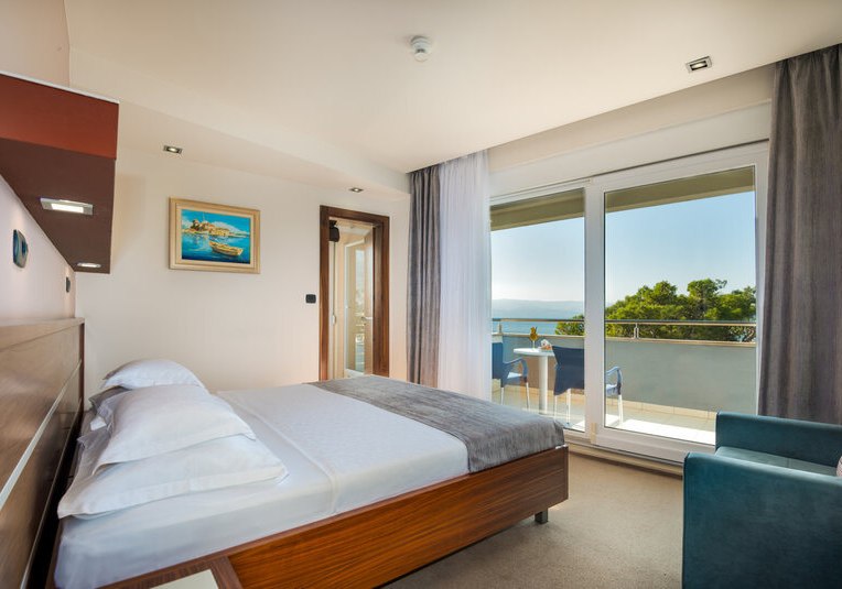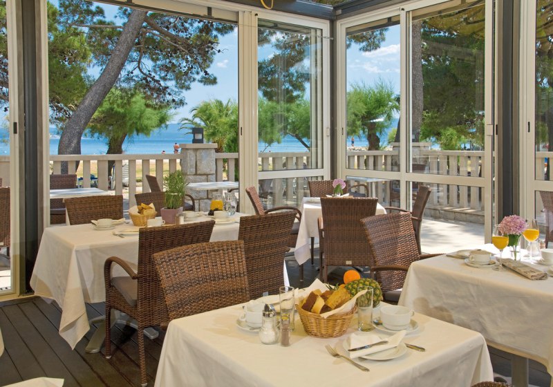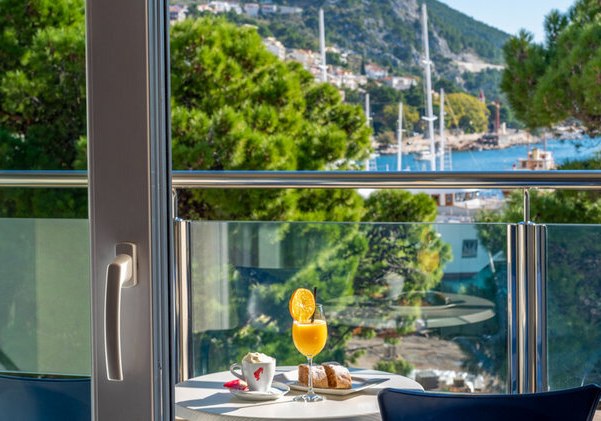 Eure Abende gestaltet Ihr entspannt und frei: Die hauseigene Bar bietet den passenden Abschluss nach Strandstunden oder einem Besuch im Wellnessbereich. Dank der wenigen Meter ins Zentrum von Omiš wechselt Ihr im Handumdrehen zwischen Hotelruhe und städtischer Stimmung – der Spaziergang selbst wird Teil des Erlebnisses.