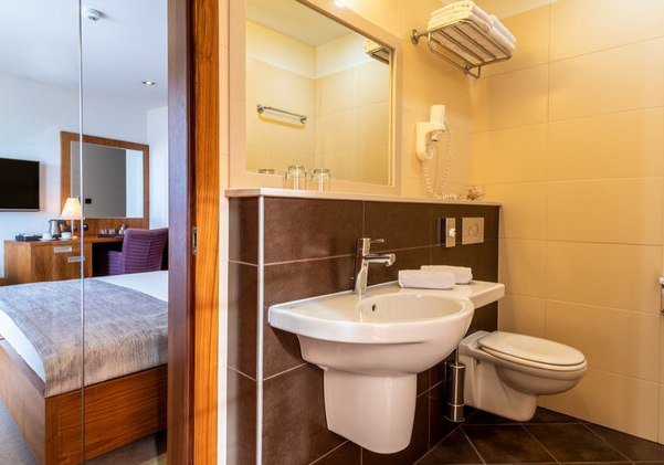 Eure Zimmer sind auf Funktion und Ruhe ausgelegt: Klimaanlage/Heizung, Sat‑TV, Telefon und inklusive WLAN schaffen eine sichere Basis. Bad oder Dusche/WC, Föhn und Kosmetikspiegel sind an Bord, der Safe ist inklusive. Minibar nutzt Ihr gegen Gebühr; ein Wasserkocher bzw. Kaffee‑/Teezubereiter steht bereit – praktisch für einen frühen Start oder einen späten Tee.