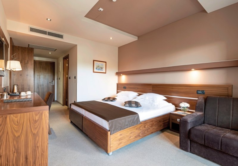 - Klar ausgestattet: WLAN und Safe inklusive, Klimaanlage und Sat‑TV im Zimmer.