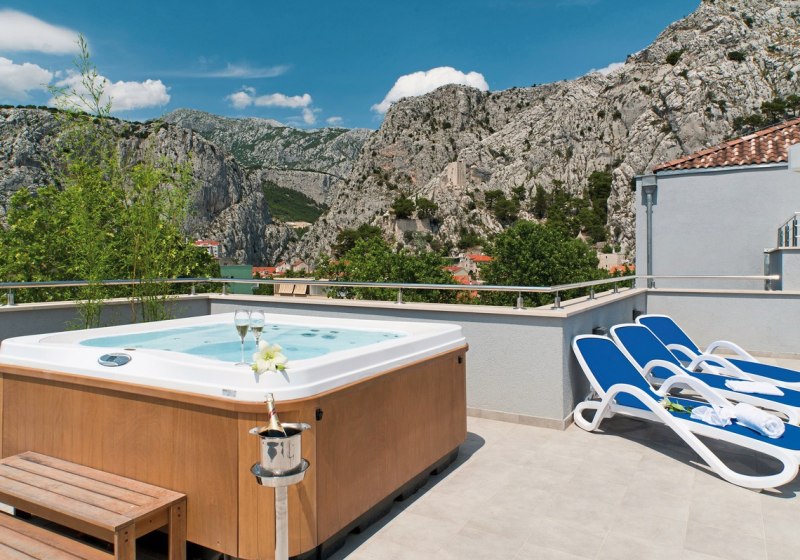 Die Umgebung von Omiš lädt zum Wandern ein – ideal für einen Perspektivwechsel zwischen Küste und Hinterland. Dank kurzer Wege bleibt der Tag flexibel: morgens Fitness oder eine Runde am Strand, später ein Spaziergang durch die Stadt, zum Abschluss der Blick vom Dach‑Whirlpool. Ihr stellt Euch Euer Aktiv‑ oder Ruheprogramm nach Lust zusammen.