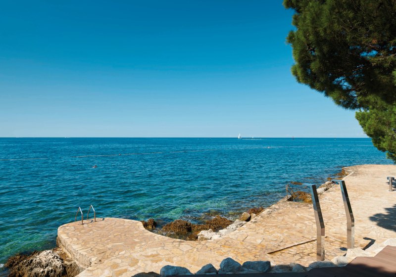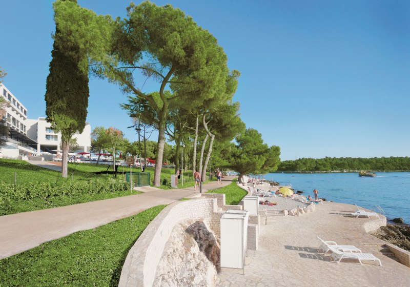 Ihr residiert in Zelena Laguna bei Poreč, keine 50 Meter vom Kiesstrand entfernt. In der Umgebung findet Ihr Einkaufsmöglichkeiten und einen Supermarkt, sodass kleine Besorgungen schnell erledigt sind. Pula gilt als nächste größere Stadt und erweitert das Ausflugsprogramm um historische Eindrücke und städtisches Flair entlang der Küste.