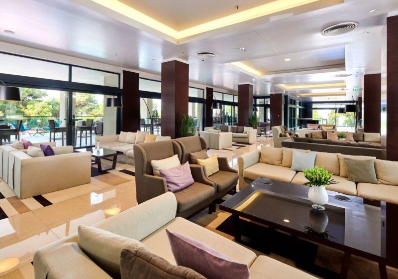 Die öffentlichen Bereiche sind auf Komfort und Orientierung ausgelegt: Lobby mit 24-Stunden-Rezeption, vier Aufzüge, kostenloses WLAN, Shops und Friseur. Parkplätze und eine Ladestation für Elektrofahrzeuge erleichtern die Anreise. Im Außenbereich warten Sonnenliegen und Schirme, am Strand sind Liegen für Euch kostenlos reserviert.