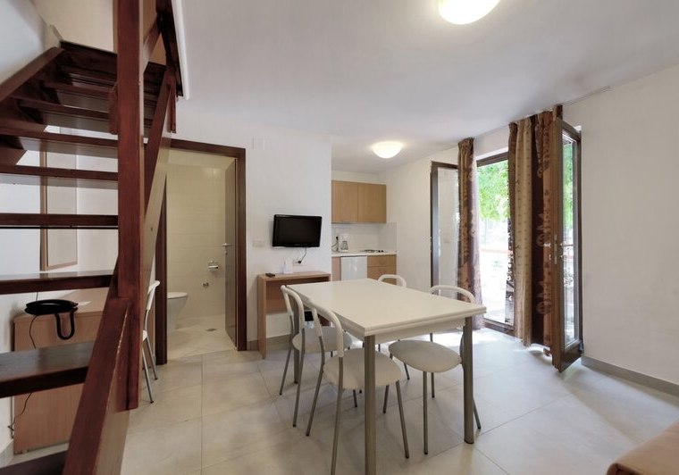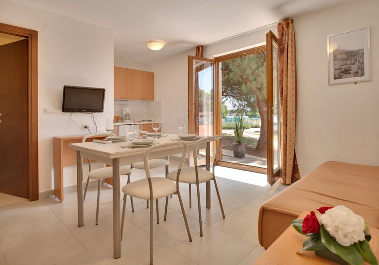 Weitere Ausstattungen wie Essecke, Fliesenboden und unterschiedliche Bettformate passen sich Euren Routinen an. In einigen Einheiten finden sich Merkmale wie Balkon oder Terrasse mit Garten- oder Meeresbezug, wodurch Ihr den Außenbereich stärker einbezieht. Das Design bleibt zweckmäßig und alltagstauglich – ideal, wenn Ihr Zeit am Strand, beim Sport oder in Rovinj verbringt und eine praktische Basis möchtet. Highlight: Balkon oder Terrasse schaffen zusätzlichen Lebensraum im Freien.