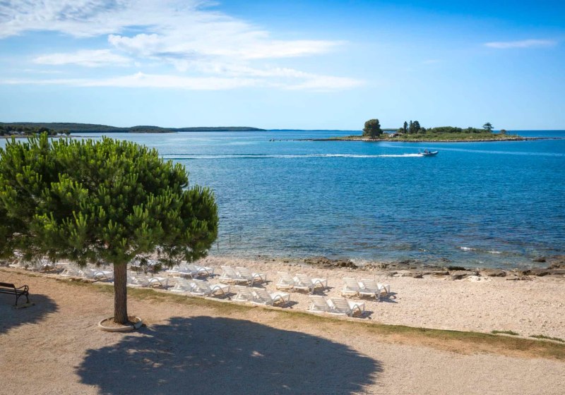 Ihr wohnt direkt am Meer auf der Halbinsel bei Rovinj, nur 3 km vom historischen Stadtzentrum entfernt und damit nah genug für einen Bummel am Abend. Der Strand vor der Tür ist mit der Blauen Flagge ausgezeichnet, was für sauberes Wasser und gepflegte Zonen steht. Das Umfeld wirkt ruhig, die Wege führen durch Grünflächen Richtung Pool, Sportfelder und Gastronomie. Die Anreise ist unkompliziert: Der nächstgelegene Flughafen liegt etwa 40 km entfernt. Innerhalb der Anlage nutzt Ihr Liegen und Sonnenschirme am Pool und am Strand. Dank hoteleigenem Shuttleservice und Tour-Desk bleibt Ihr flexibel, wenn Ihr Ausflüge plant oder Euch bequem organisierte Transfers wünscht. So kombiniert Ihr Strandnähe mit guter Erreichbarkeit von Rovinj für Kultur, Hafenflair und Restaurants. Highlight: Kurze Distanzen – Strand direkt, Rovinj in 3 km, Flughafen rund 40 km.