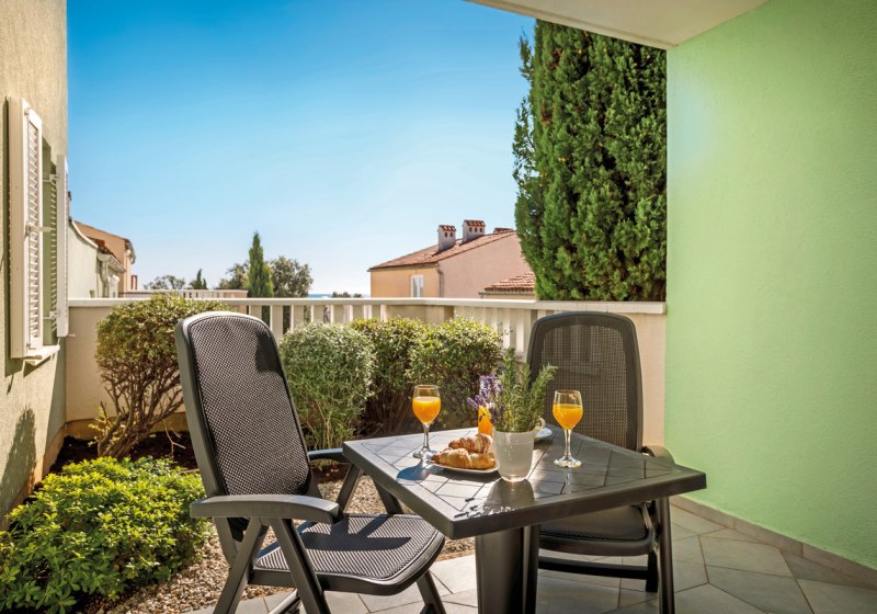 - Draußen sitzen: Jedes Studio mit Balkon oder Terrasse für die Abendstunden.