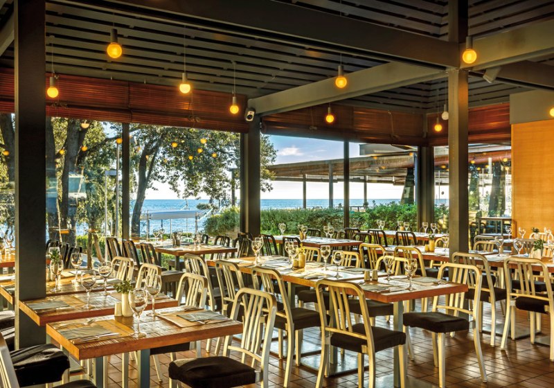 Die Wege führen Euch durch Gärten hinunter Richtung Strandabschnitte mit Kies, Felsen und Badeplateaus. Kulinarisch wählt Ihr zwischen Buffet, À-la-carte mit italienischer Küche und Fast-Food-Optionen, dazu Café, Speisesaal und Strandbar. Das Unterhaltungsprogramm setzt tagsüber auf Aktivität und am Abend auf Programm für alle Altersstufen. WLAN begleitet Euch in der gesamten Anlage. Highlight: Panoramablick Rovinj – vom Gelände aus schaut Ihr auf die Altstadt gegenüber.