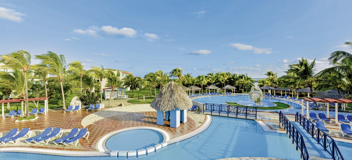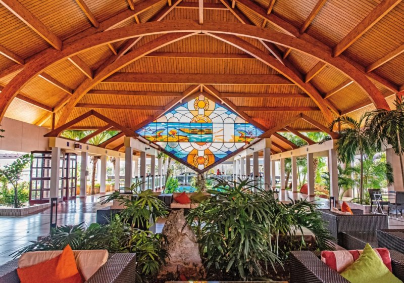 Im Cubanacan Mojito wohnt Ihr direkt am feinsandigen Strand von Jardines del Rey, ruhig gelegen und mit weitem Blick über Meer und Gartenanlage. Die offene Resortstruktur mit Wegen zwischen Palmen und drei Süßwasserpools wirkt entspannt und unkompliziert. Ihr bewegt Euch zwischen Lobby, Bars und Theater ohne Hektik; zwischendurch lockt die Strandbar. Highlight: Direkte Strandlage mit ruhiger Atmosphäre, ideal für erholsame Tage am Meer.