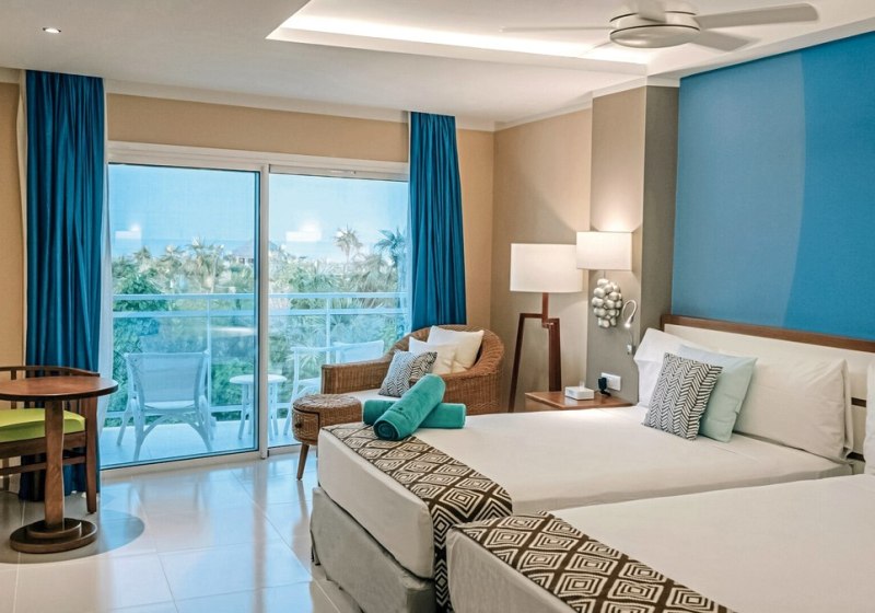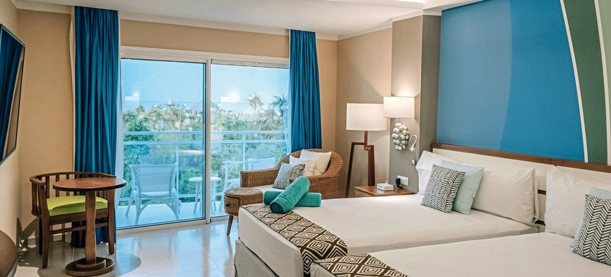 Die 5-Sterne-Anlage bündelt vielfältige Kulinarik mit acht À-la-carte-Restaurants und zwei Buffetrestaurants, flankiert von Lobbybar Oasis, Poolbar, Snackbar und der Strandbar El Chiringuito. Ihr wohnt in einer der 571 Wohneinheiten, wählt Ausblicke auf Garten, Pool oder Meer und – je nach Kategorie – Suiten mit separatem Wohnraum oder Swim-up-Option. Das Haus arbeitet mit energieeffizienter Beleuchtung, Recyclingstationen und regionalen Baustoffen; der Energieverbrauch ist 100% CO₂-neutral. Für Service sorgen mehrsprachiges Team, Concierge und medizinischer Dienst.
