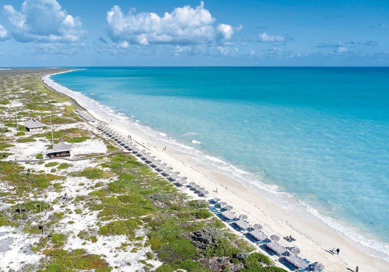 - Direkt am Strand: Cayo Cruz, Lage direkt am Sandstrand mit Liegen und Schirmen.