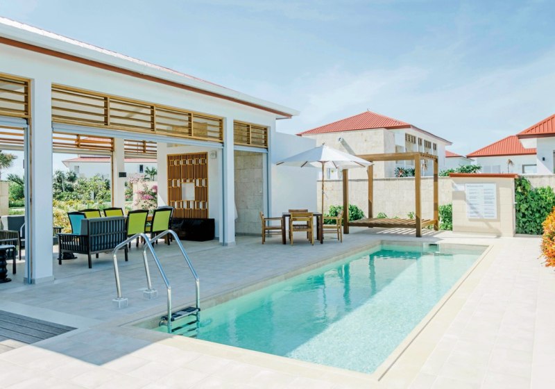 Die 5-Sterne-Anlage bietet 571 Wohneinheiten, eine großzügige Gartenanlage und sechs Pools. Liegen und Schirme stehen an Pool und Strand bereit. Die Infrastruktur ist umfassend: Rezeption und Empfangsbereich, Concierge, WiFi, Lounge und Geschäfte, dazu medizinischer Service und Friseur. Ein Mehrzweck-Sportplatz, Tennis und Squash rahmen die Aktivzonen.
