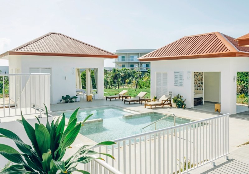 - Weitläufig geplant: Sechs Pools und Gartenbereiche verteilen Strömungen und Ruhepunkte.