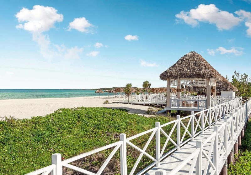 Ihr residiert auf Cayo Coco direkt am Sandstrand Flamenco Beach. Der feine Zugang zum Meer prägt Euren Tagesrhythmus: wenige Schritte vom Zimmer an den Strand, von dort zur Strandbar oder zurück an die Pools. Entlang des hoteleigenen Boulevards findet Ihr Restaurants und Kunsthandwerksstände – praktisch für einen abendlichen Spaziergang ohne weite Wege.