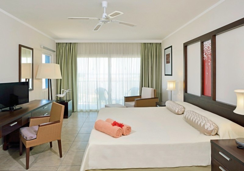 Ihr wohnt in klimatisierten Zimmern mit Balkon oder Terrasse, Minibar, Safe und TV; Wasserkocher und Kaffeemaschine sind ebenso an Bord wie Haartrockner, Bügelset und Telefon. Viele Einheiten bieten Garten- oder Poolblick, ausgewiesene Kategorien verfügen über Meerblick. Mit 40 m² Raumgefühl, Schreibtisch und internationalem TV wirkt der Alltag strukturiert und aufgeräumt.