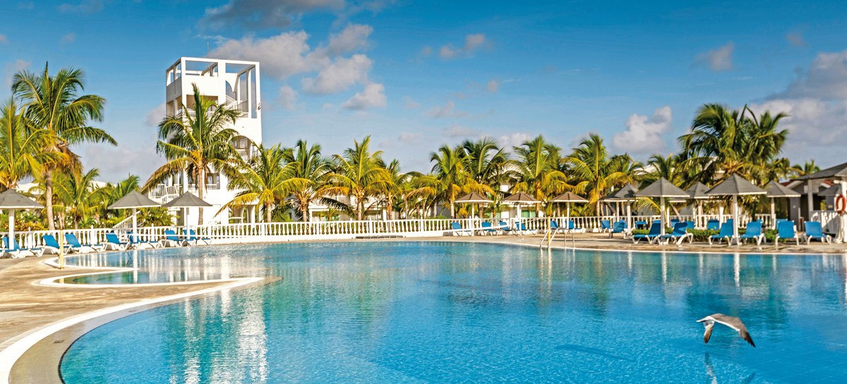 Ihr residiert auf Cayo Coco, direkt am feinsandigen Strand und außerhalb des Ortes. Die Umgebung wirkt weit und maritim, der Blick schweift vom Strand über das türkisfarbene Wasser. Wer anreisen möchte, erreicht das Resort vom Flughafen Cayo Coco nach etwa 17 Kilometern. Die Wege im Resort führen geradlinig von Lobby und Bars zu Pool, Terrasse und Strandzugängen.