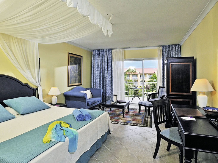 Die Betten sind überwiegend als Queen- oder Kingsize ausgeführt. Ausblicke variieren zwischen Garten, Pool und Meer, Verdunkelungsvorhänge und Kissenauswahl unterstützen erholsame Nächte. Als besondere Kategorien warten die Junior Suite Royal Service in erster Strandreihe mit eigener Terrasse sowie die Master Junior Suite Royal Service Swim-Up mit Hydromassagewanne und direktem Poolzugang.