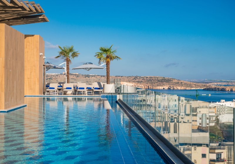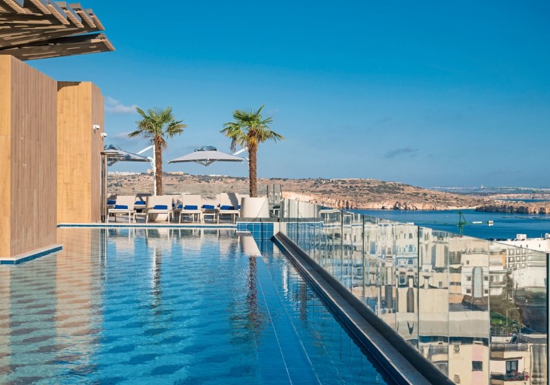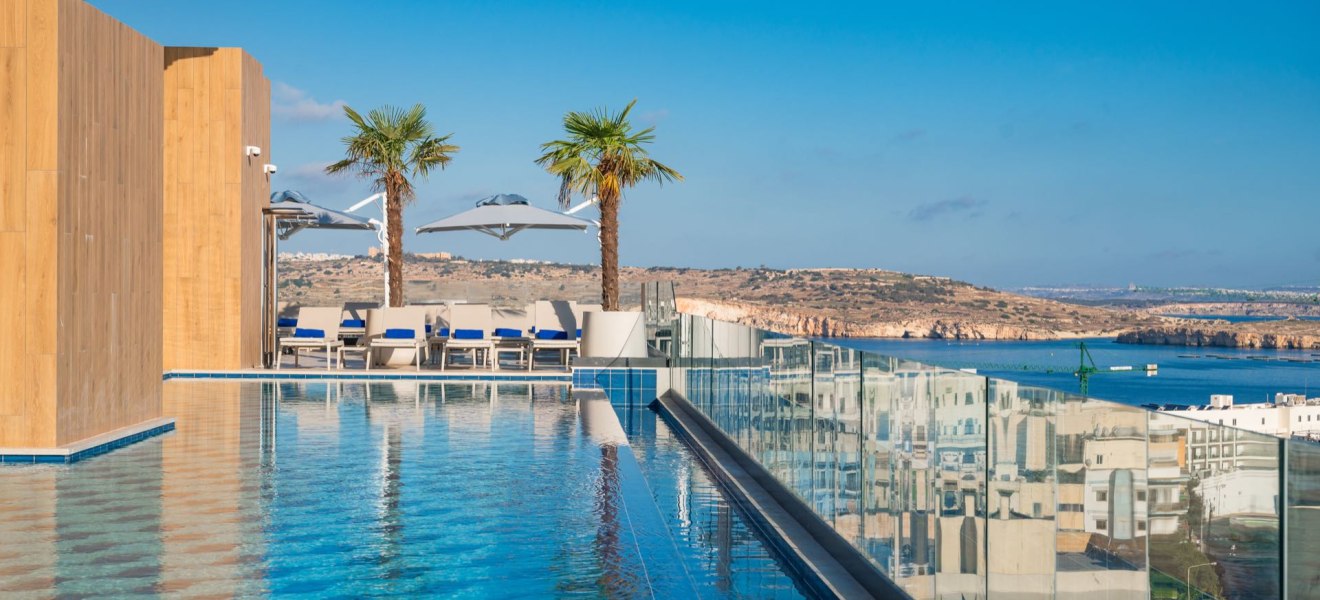Im Best Western Premier Malta wohnt Ihr in einem 2024 neu eröffneten Haus, das moderne Klarheit mit freundlichem Komfort verbindet. Die öffentlichen Bereiche wirken aufgeräumt und einladend, die Wege sind kurz, die Atmosphäre entspannt. Ob Ihr die Dachterrasse mit Pool ansteuert oder in der Lobby ankommt: Alles fühlt sich frisch, durchdacht und unkompliziert an. Der Blick Richtung Meer zeigt sich je nach Zimmerkategorie seitlich, die Nähe zur Küste prägt die Stimmung. So entsteht ein Ausgangsort, der Euch Raum gibt – für Strandtage, Stadtbesuche und ruhige Abende.