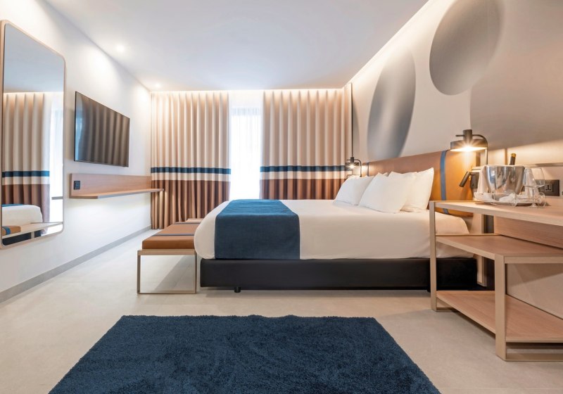 Ihr wählt aus 170 Zimmern mit Balkon oder Terrasse, Dusche/WC, TV, Safe und Wasserkocher. Die Minibar ist gegen Gebühr verfügbar, die zentral gesteuerte Klimaanlage und Heizung sorgt für konstante Temperaturen. Seitlicher Meerblick ist buchbar, wodurch Ihr die Nähe zur Küste optisch in den Tag holt. Das Design folgt praktischen Linien und bleibt angenehm unprätentiös.