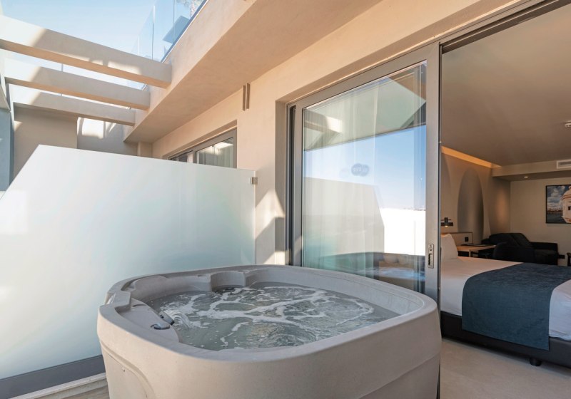 Mehr Raum bieten die Juniorsuiten mit etwa 40 Quadratmetern, ausgewählte Einheiten verfügen über einen eigenen Jacuzzi. Die Executive Suite mit rund 44 Quadratmetern setzt auf ein separates Schlafzimmer und schafft klare Zonen für Schlafen und Wohnen. So findet Ihr die passende Balance aus Rückzug und Struktur – vom kompakten Doppelzimmer bis zur Suite mit zusätzlichem Platz.