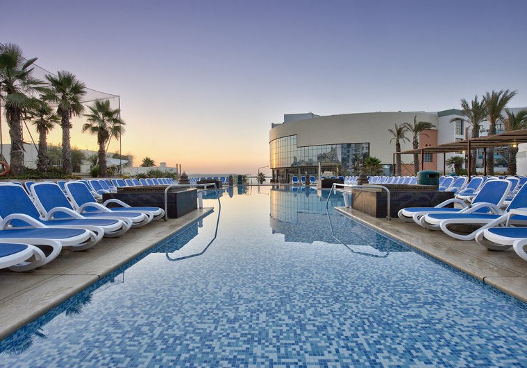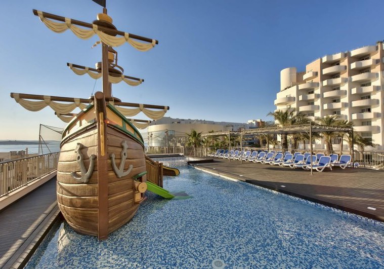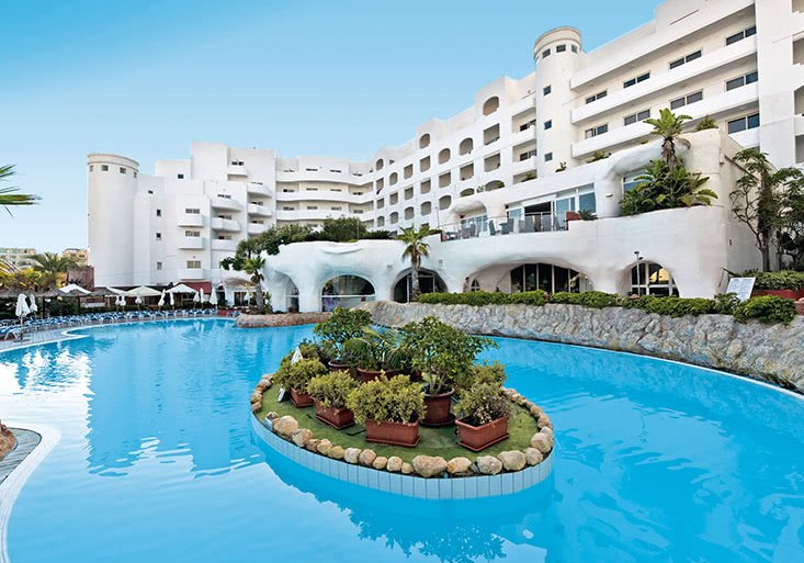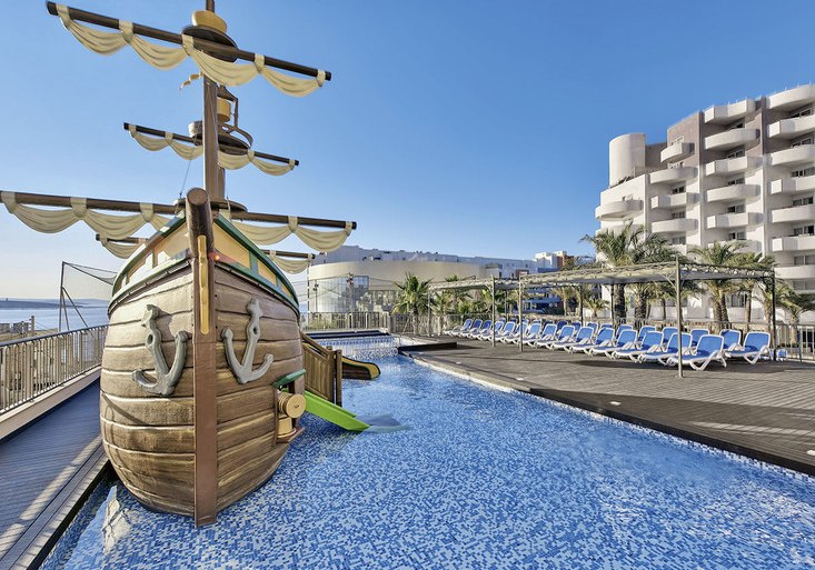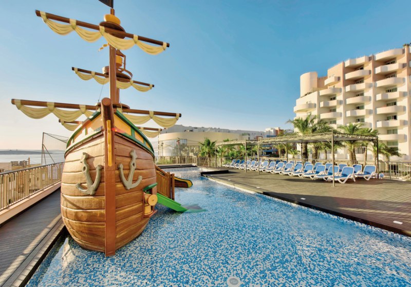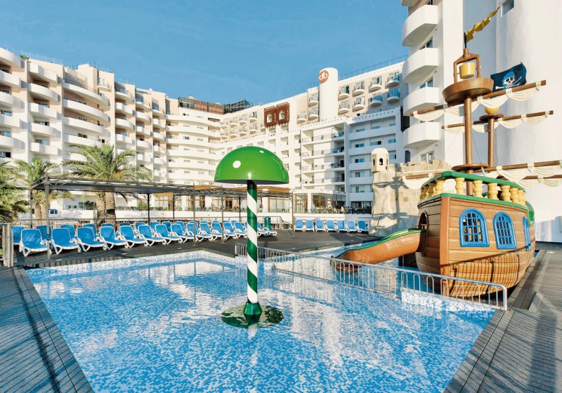 Die Größe mit 460 Zimmern verteilt auf 10 Etagen bringt Vielfalt und gute Infrastruktur: Aufzüge, kostenfreies WLAN, Sonnenterrassen mit Liegen und Schirmen, Badetücher gegen Kaution, Geldwechsel und Wäscheservice. Für Kinder steht ein eigener Bereich mit Piratenschiff parat, während Ihr zwischen Innen- und Außenpools, Spa und Fitnessbereich wechselt. Das Herzstück bleibt die Lage nahe Strand, Promenade und Busbahnhof – ideal für entspannte Tage und spontane Ausflüge.