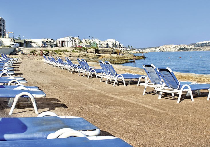 Ihr logiert in Qawra/St. Paul’s Bay direkt an der Küste. Der Sandstrand liegt etwa 150 Meter entfernt, rund zwei Gehminuten. Das Stadtzentrum erreicht Ihr in unmittelbarer Nähe; Restaurants, Bars und Einkaufsmöglichkeiten umgeben das Hotel. Der Busbahnhof liegt ungefähr 100 Meter entfernt, ideal für Ausflüge über die Insel. Eine Strandbar ergänzt die Szene am Wasser. Zum Flughafen Malta sind es rund 20 Kilometer.