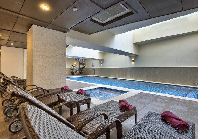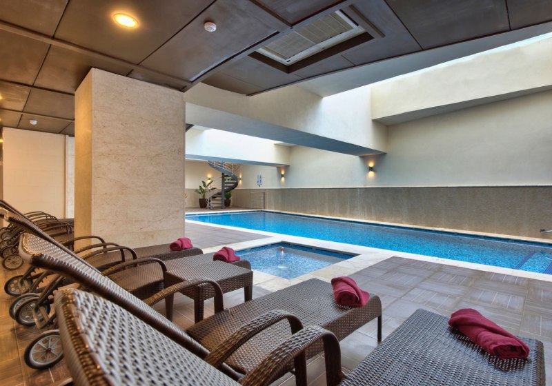 Das Wellness-Center ergänzt klassische Anwendungen um Optionen wie Ayurveda, Hydrotherapie und Beauty-Services. Ein Whirlpool steht ebenso bereit. So verbindet Ihr Badezeiten mit klar strukturierten Spa-Ritualen – ohne Umwege und mit kurzen Wegen zu den Zimmern. Wer danach Energie tanken will, findet das Fitnesscenter direkt im Haus.