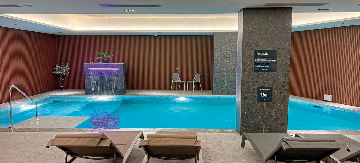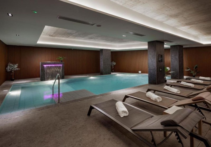 - Bahnen im Wasser: Außen- und Hallenpool sichern konstantes Schwimmtraining.