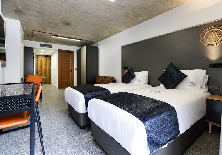 Grands Suites Hotel Residences & Spa verbindet die Freiheit einer Residence mit der Verlässlichkeit eines Vier-Sterne-Stadthotels: Küchen in vielen Einheiten, klare Grundrisse, Außen- und Innenpool, Spa mit Sauna und Dampfbad sowie zwei Restaurants mit Bar-Optionen.