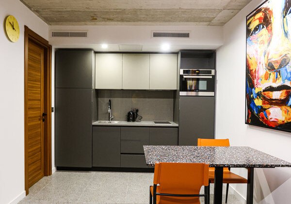 Die Wohneinheiten im Grands Suites Hotel Residences & Spa sind auf Raum und Funktion angelegt. Suiten mit einem oder zwei separaten Schlafzimmern sowie Familienzimmer bieten klare Grundrisse mit Wohnbereich; viele Einheiten verfügen über Balkon oder Terrasse. Voll ausgestattete Küche oder Kochnische, Kühlschrank beziehungsweise Minikühlschrank, Mikrowelle sowie Kaffee- und Teezubereiter unterstützen Euren Tagesrhythmus.