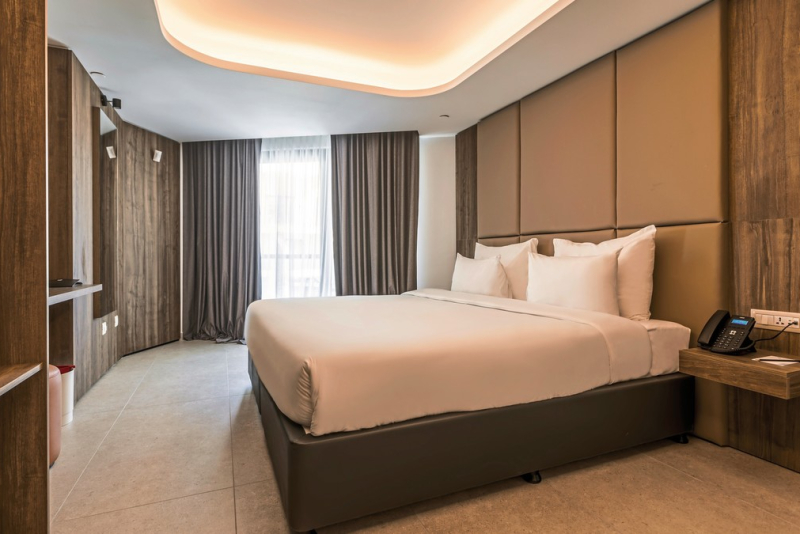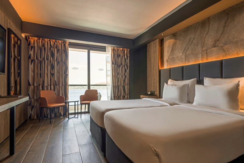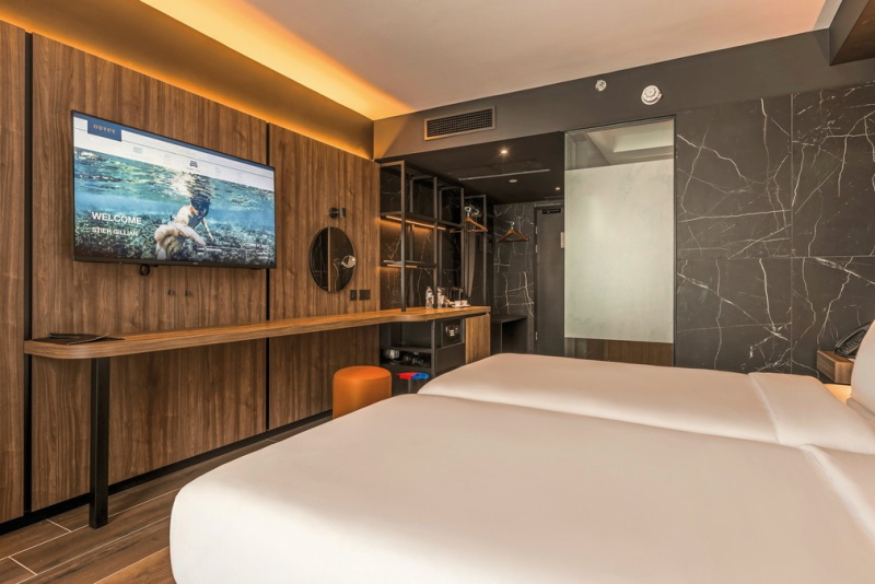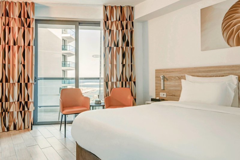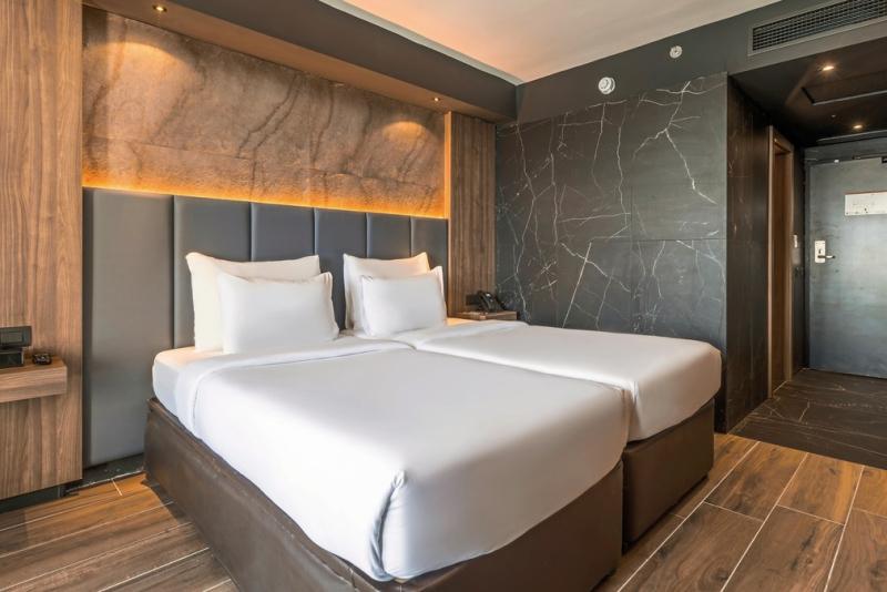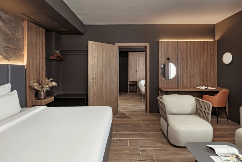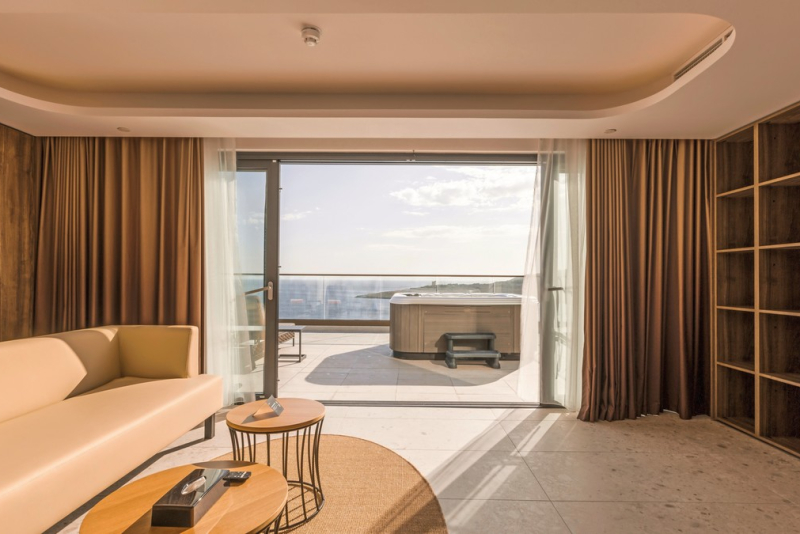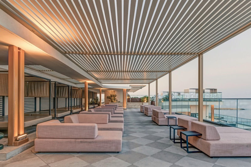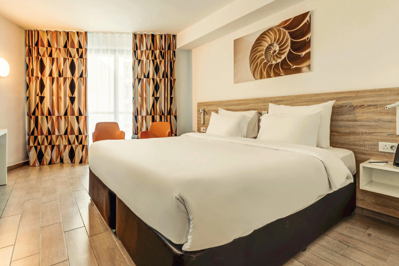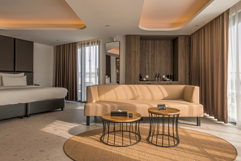 Es gibt Einzel- und Doppelzimmer sowie elegante Suiten. Alle Zimmer sind komfortabel ausgestattet mit Flachbildschirm, Safe, Föhn, einer Kaffee-/Teestation und WLAN. Außer den Economy-Zimmern haben alle Zimmer einen eigenen Balkon. Etliche Zimmer bieten zudem einen schönen Blick auf das Mittelmeer. Alle Räumlichkeiten sind mit einer Wärmedämmverglasung und eigenen Badezimmern versehen. Schon in den Economy-Zimmern gibt es barrierefreie Duschen. Es können in den gehobenen Kategorien bis zu drei Personen übernachten.Gastronomie / Restaurants