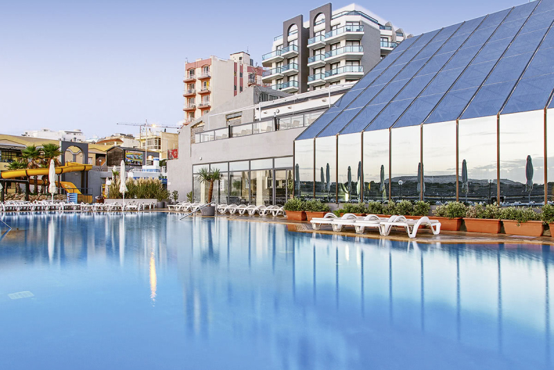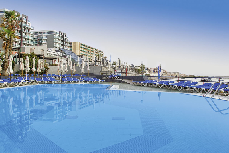 Das Haus beherbergt fünf Restaurants, eine Sun & Surf Pool Bar sowie die Ambassador Lounge. In den Restaurants gibt es maltesische Küche, aber auch Pizza und Pasta, Grillgerichte und glutenfreie Kost. Im Cheeky Monkey Gastropub verspricht das Haus neben Essen und Getränken auch viel Vergnügen. Das All-Inclusive-Hotel bietet an ausgewählten Orten Speisen und Getränke vom Frühstück bis 23 Uhr an. Es definiert sich als eines der besten Hotels dieser Art, denn das Paket enthält auch Eiscreme, Snacks und Cocktails.Sport / Unterhaltung / Pool