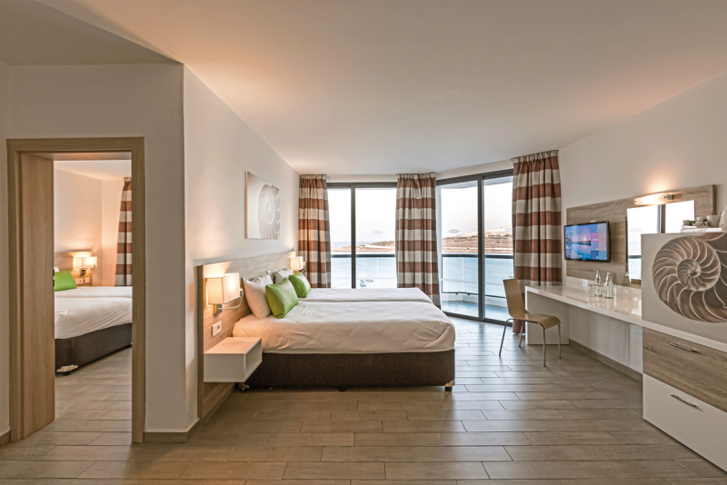 Das AX Seashells Resort at Suncrest liegt in Qawra auf der Nordostseite von Malta, nur wenige hundert Meter entfernt vom Malta National Aquarium und dem nahen Qawra Tower. Bis zur Hauptstadt La Valetta dauert die Fahrt mit dem Auto etwa eine halbe Stunde, ebenso lange bis zum Flughafen Malta.Zimmer / Unterbringung