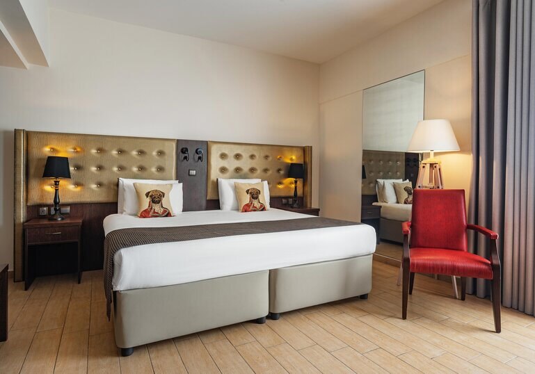 Für unterschiedliche Bedürfnisse gibt es Familienzimmer, getrennte Schlafzimmer und einige Suiten. Details wie WiFi, Radio, Bügelset, Hausschuhe oder Fliesenboden unterstützen den Tagesablauf. Der Ausblick variiert zwischen Stadt- und Straßenblick – passend für einen urbanen Rahmen, in dem Ihr konzentriert ruht, plant und Euch auf Sliema fokussiert.