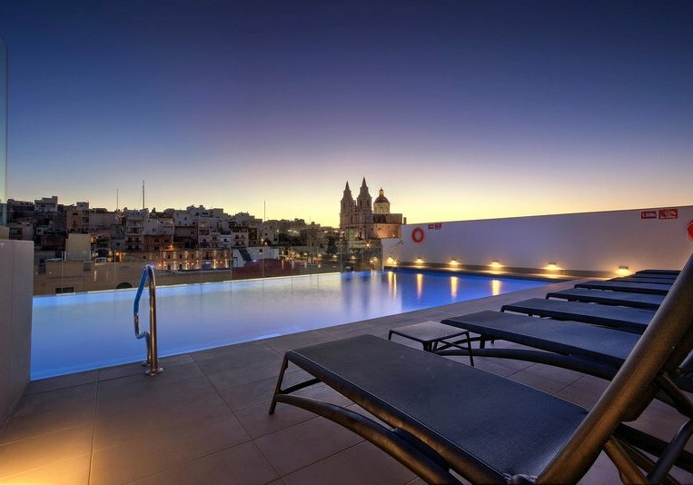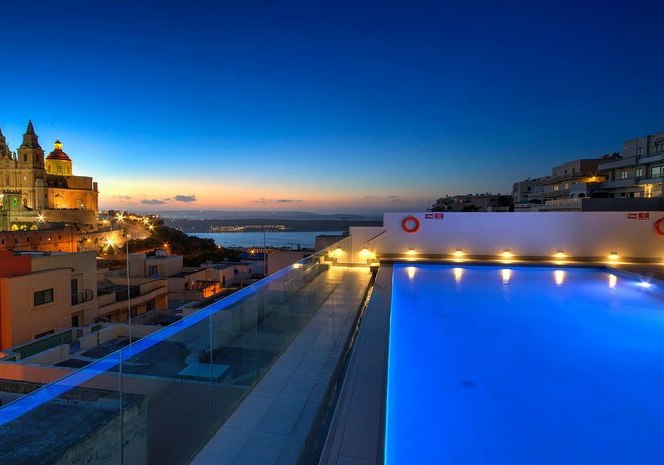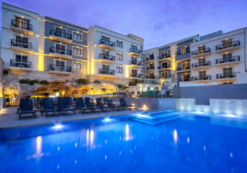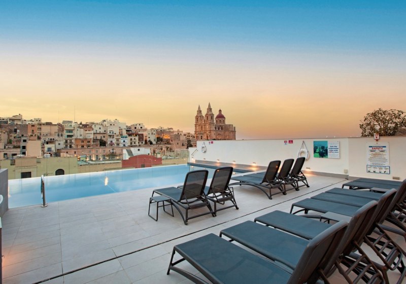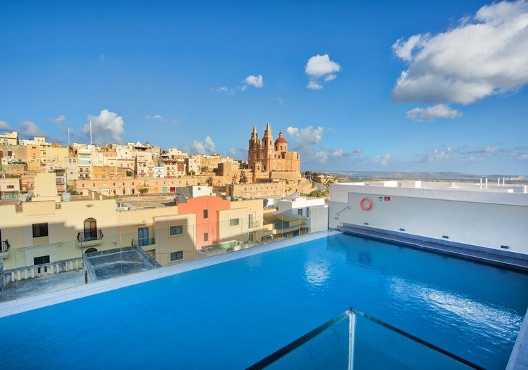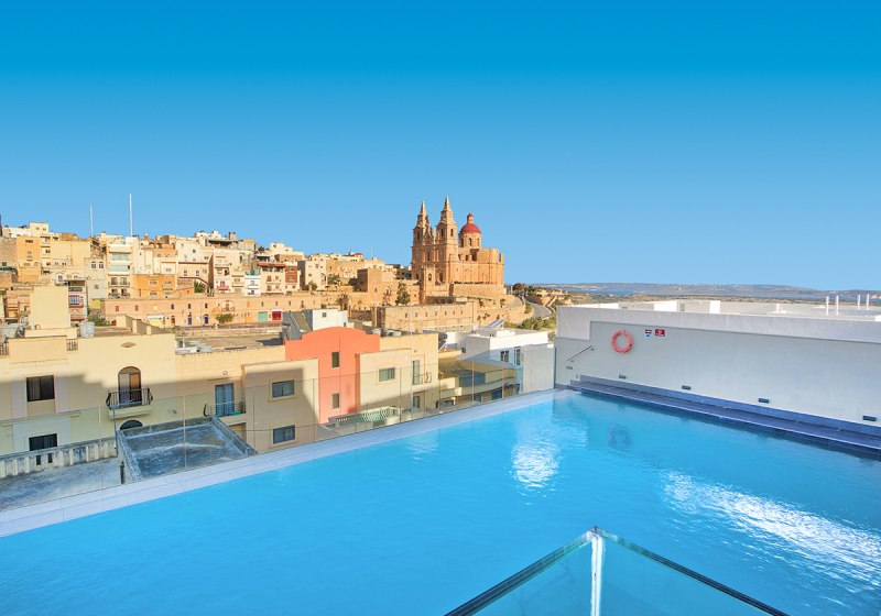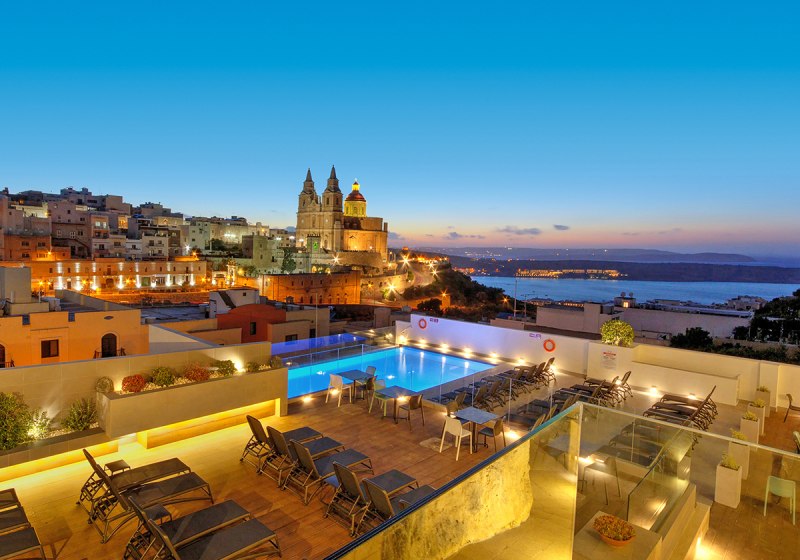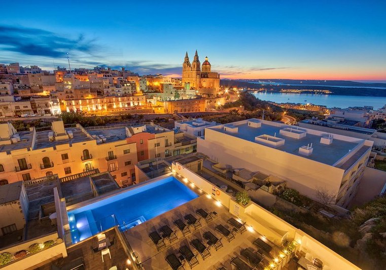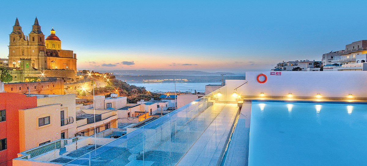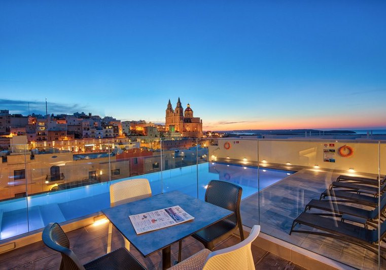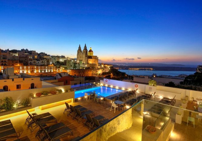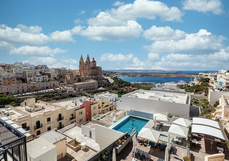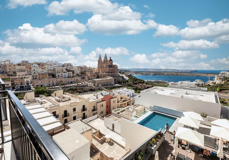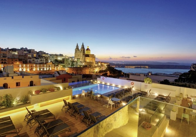 „Das Pergola Hotel & Spa empfiehlt sich, wenn Ihr Apartmentfreiheit mit Spa, Pools und starker Lage verbinden wollt – ruhig erhöht, nah am Zentrum und mit Blick auf Gozo und Comino für klare Momente über dem Meer.“