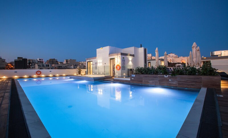 Im Solana Hotel & Spa wohnt Ihr in einem frisch renovierten Haus, das im Winter 2023/2024 modernisiert wurde und mit klaren Linien und freundlicher Weite empfängt. Auf der Dachterrasse öffnen sich zwei Pools mit Blick auf Gozo und Comino – ein stiller Rahmen für sonnige Stunden über den Dächern von Mellieha.