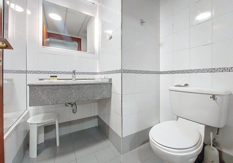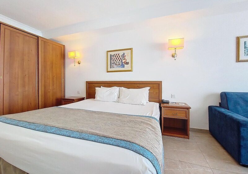 Die öffentlichen Bereiche sind umfangreich: Lounge, Café, Restaurant, Bar, Snackbar, Poolbar, TV-Raum und eine Dachterrasse. Hinzu kommen WiFi, 24-Stunden-Rezeption, Gepäckaufbewahrung, Wäscheservice, Shuttleservice und Mietwagenverleih. Wer shoppen möchte, nutzt die Geschäfte, den Souvenir-Shop oder den Supermarkt im Haus. Sicherheit wird mit Brandmeldern und Sicherheitsdienst unaufgeregt mitgedacht. So fühlt sich Euer Tag flexibel an: erst Baden, dann Stadtbummel, abends entspannt essen – alles nur wenige Schritte voneinander entfernt.