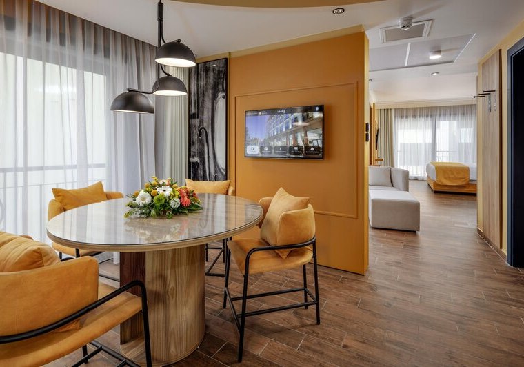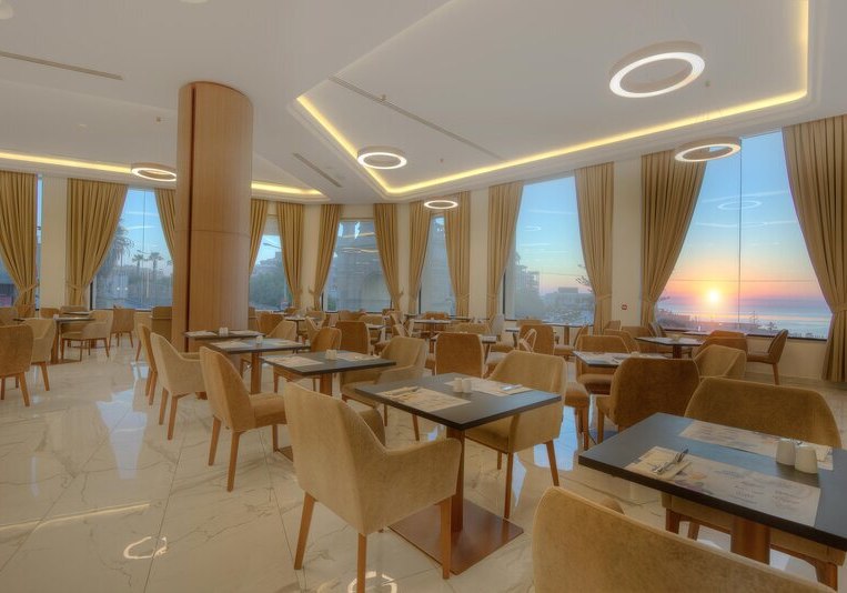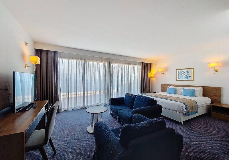 Als Strandurlauber profitiert Ihr von der Distanz von nur 50 Metern zum Meer und den kurzen Wegen zu Bars, Restaurants und einer Bushaltestelle. Kulinarisch bleibt Ihr frei: vom Frühstück bis zur Vollpension, mit vegetarischen Optionen, Diätgerichten, Kindermenüs sowie alkoholischen und alkoholfreien Getränken. Wer seinen Aufenthalt strukturiert, findet Business-Center, Konferenzraum und Bankettsaal, während das Spa mit Hamam und Sauna für gelassenen Ausgleich sorgt. Für Familien stehen Kinderbetreuung und flexible Zimmertypen bereit, inklusive Juniorsuiten mit Schlafsofa.