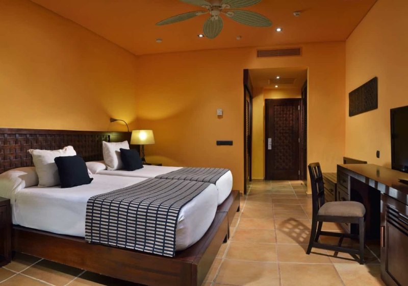 Ihr schlaft in Zimmern mit King-Size- oder zwei Queen-Size-Betten, Klimaanlage und Sat-/LCD-TV. Bad mit Dusche oder Wanne, Föhn und Safe gehören ebenso dazu wie Kaffeemaschine und Kühlschrank/Minibar. Balkon oder Terrasse öffnet den Blick ins Grüne oder auf die Anlage. Highlight: Solide Grundausstattung für komfortable Strandtage.