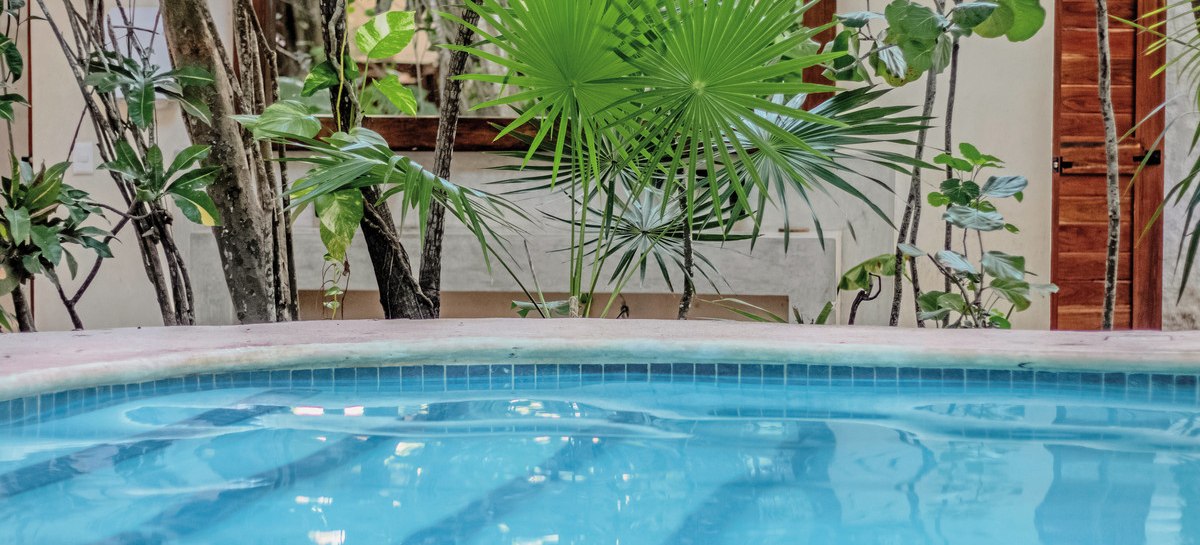 Im Hotel Casa Barbara wohnt Ihr mitten im Ortszentrum von Isla Holbox und seid sofort im entspannten Rhythmus der Insel. Zwei Gebäude mit insgesamt 26 Wohneinheiten, klare Linien und praktische Details prägen die kleine Anlage. Der Pool mit Sonnenliegen und Schirmen bildet den ruhigen Mittelpunkt, während Ihr dank WLAN überall verlässlich verbunden bleibt.