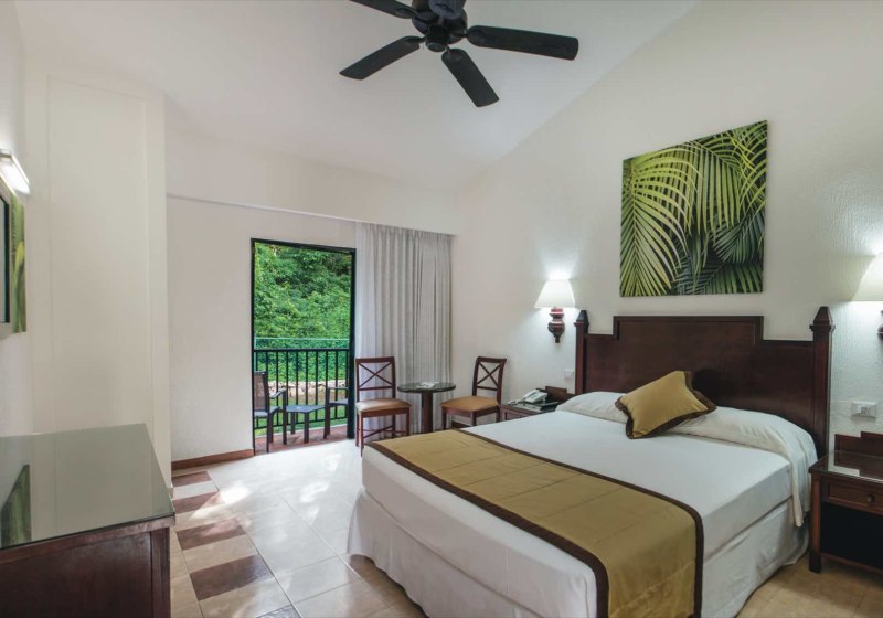 Ihr wohnt in funktional ausgestatteten Zimmern mit Sat-TV, Safe und kostenlosem WLAN. Klimaanlage, Minibar und Getränkespender sorgen für Komfort, Balkon oder Terrasse öffnen den Raum ins Grüne. Das Design konzentriert sich auf praktische Details und verlässliche Standards, damit Ihr tagsüber die Anlage und den Strand auskostet und abends solide Rückzugszeit habt.