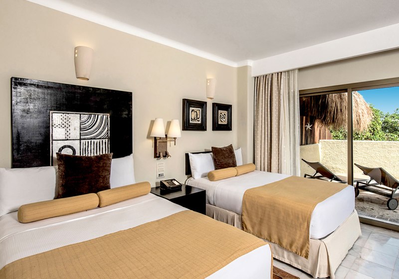 Die Zimmerausstattung folgt einem klaren Komfortstandard: Bad mit Dusche oder Badewanne und WC, Föhn, Klimaanlage, WLAN, Deckenventilator, Kabel-TV, Telefon mit Weckerfunktion, Minibar, Safe, Kaffeemaschine, Bügeleisen und -brett sowie Balkon oder Terrasse. In der Karibik sind überwiegend zwei Queensize-Betten üblich (ca. 1,40 x 2 m) – ein praktischer Rahmen für Familien.