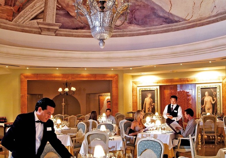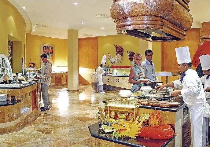 Kulinarisch habt Ihr im Iberostar Selection Paraíso Lindo breite Auswahl: ein Hauptrestaurant sowie À-la-carte-Restaurants mit amerikanischem Grill, griechischer, mediterraner und italienischer Küche plus ein Steakhouse. Dazu kommen sechs Bars, eine Eisdiele und eine Crêperie. Das All-Inclusive-Paket deckt Mahlzeiten, Snacks sowie alkoholfreie und alkoholische Getränke ab.